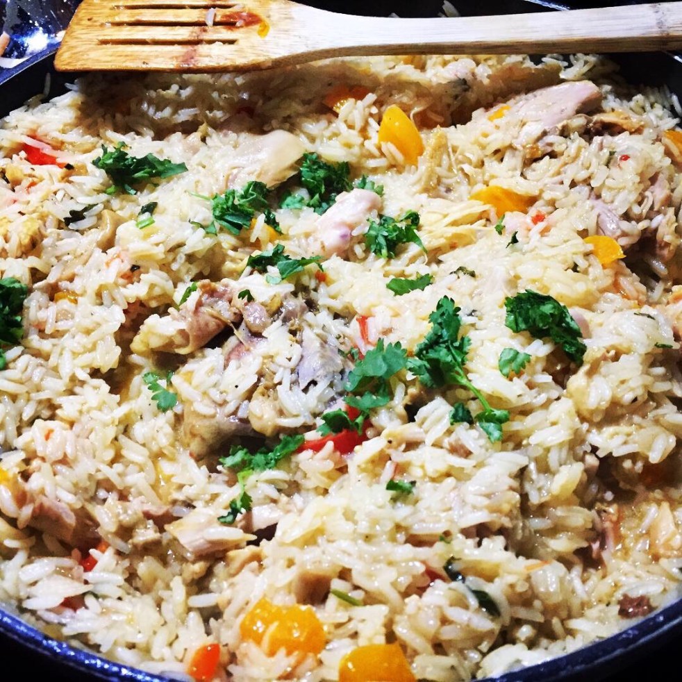 Take pot off the heat, let the rice sit for 10 minutes. Add in cilantro and fluff. Season with salt and pepper to taste.